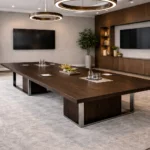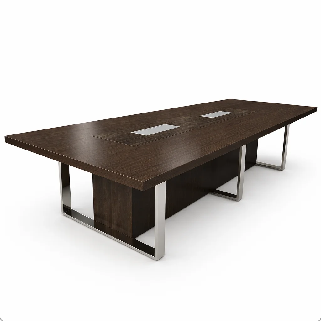 The Axiom Executive Conference Table is designed to anchor high-level discussions with clarity, presence, and authority. Featuring a generously proportioned rectangular top in a dark oak finish, it delivers a refined surface that balances visual depth with professional restraint. The table is supported by a solid central pedestal and polished metal frame legs, providing exceptional structural stability while maintaining a clean, architectural profile. Integrated flush-mounted power and data modules ensure seamless connectivity, reinforcing Axiom’s role as a modern, technology-ready solution for contemporary meeting environments. Purpose-built for boardrooms and executive spaces, this table combines durability, functionality, and timeless design—making it a confident centerpiece for decision-making spaces.