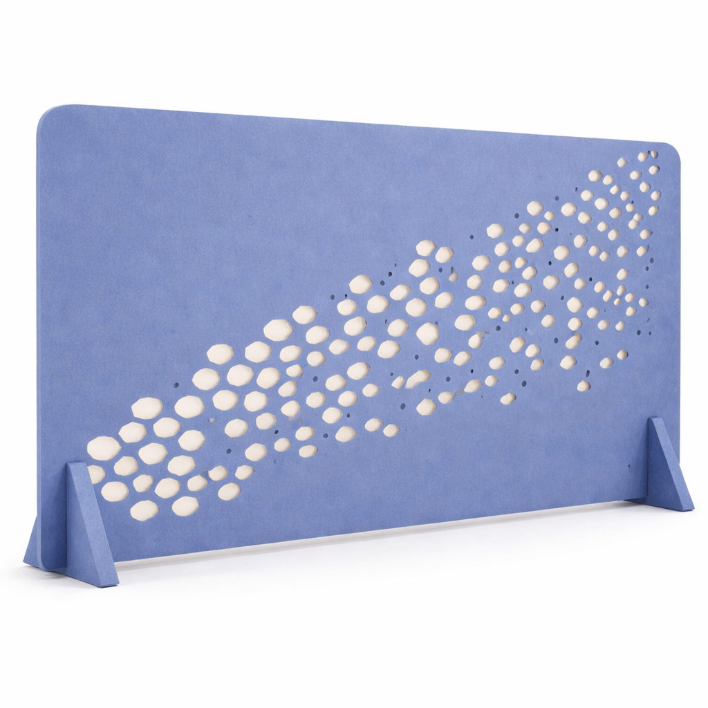 Breeze is a free-standing acoustic partition designed to shape space without closing it off. Its perforated, flowing pattern diffuses sound while maintaining visual openness, making it ideal for modern offices, collaboration zones, and breakout areas. Stable, self-supporting, and easy to reposition, Breeze delivers effective acoustic control with a light, contemporary presence.