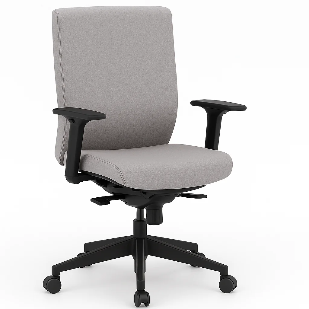 Kudos B‑H8 with upholstered adjustable back, sliding seat, nylon adjustable arms, multi‑lock mechanism, and a nylon five‑star base.