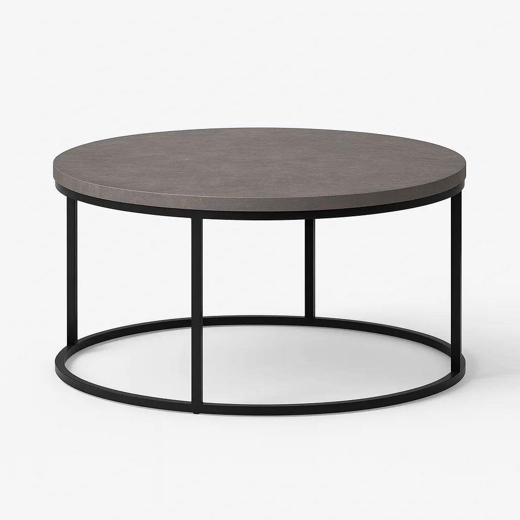 Modula TABLE features a round marble top with a deep, polished finish, supported by a sculptural black metal frame. Its vertical supports and circular base create an open, architectural silhouette that blends natural elegance with modern simplicity—ideal for refined lounges, reception areas, or minimalist living spaces.