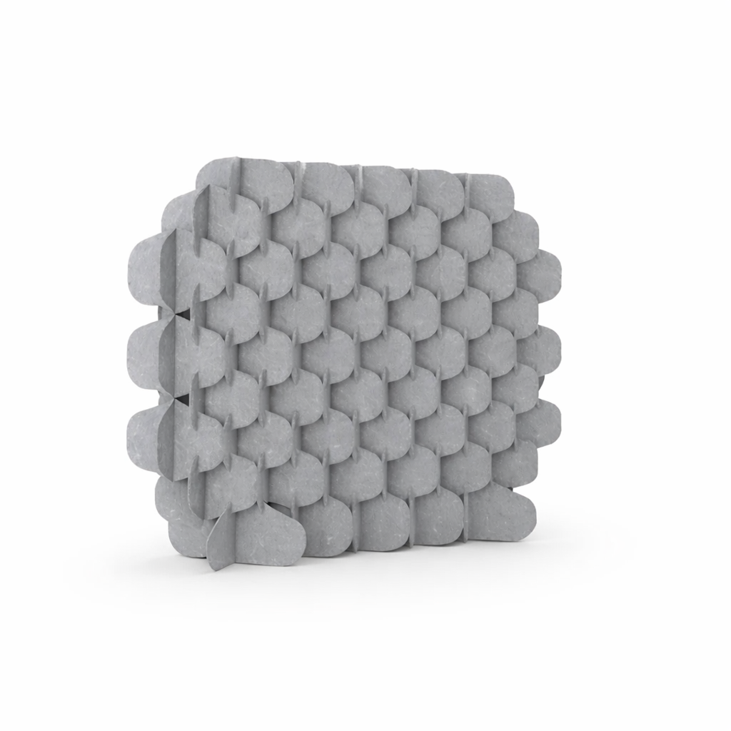 Tessera is a free-standing acoustic partition defined by its modular, cellular design and strong architectural presence. Engineered to manage sound while shaping space, Tessera delivers effective acoustic separation without closing off the environment. Its sculptural form and precision-cut pattern create visual depth, making it a functional divider and a design statement in modern workplaces, lounges, and collaborative areas.